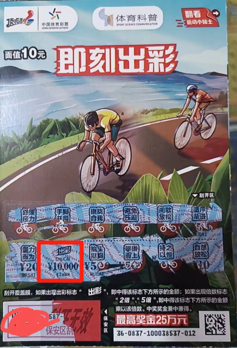 幸運(yùn)兒刮“即刻出彩”喜中10000元!