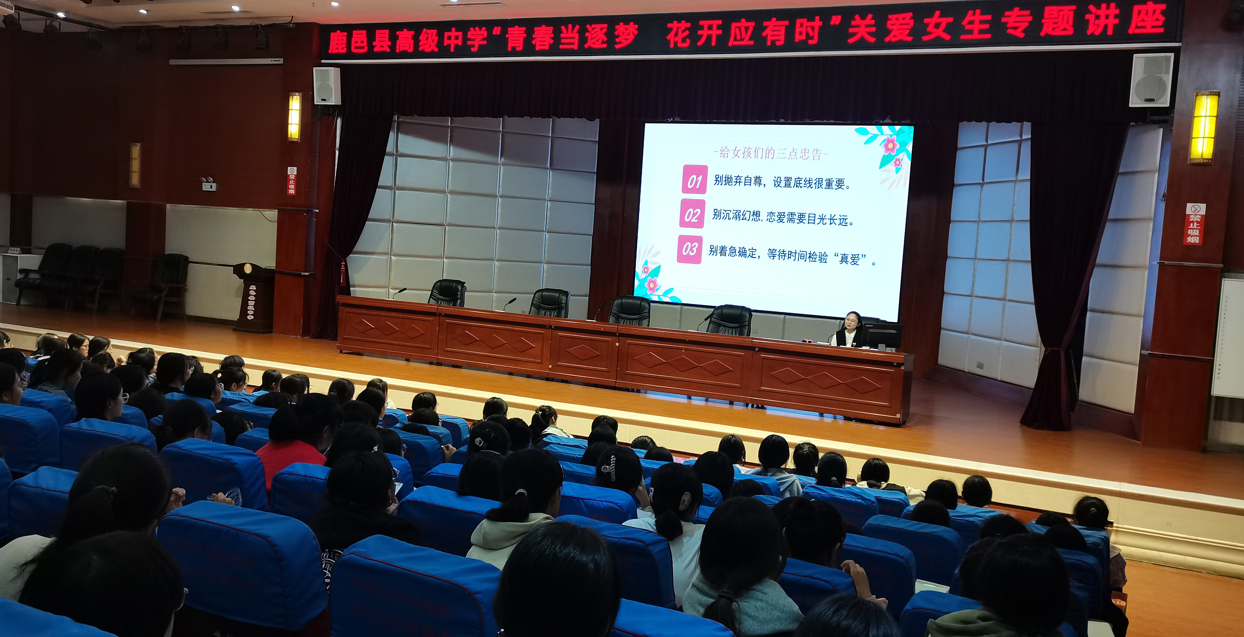 9月26日、27日晚,鹿邑縣高級中學(xué)舉行兩場以“青春當(dāng)逐夢,花開應(yīng)有時(shí)”為主題的關(guān)愛女生專題講座。講座進(jìn)一步推動學(xué)校心理健康教育工作,幫助學(xué)生提高心理健康水平,引導(dǎo)女生正確認(rèn)識青春期心理及生理上的變化,樹立積極向上的人生觀。此次專題講座由學(xué)校婦委會主任夏寧主持。