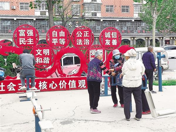 • 4月16日,幾名老年人在中心城區(qū)七一路東段康灣社區(qū)街頭游園內(nèi)鍛煉身體。他們?nèi)宄扇?,其樂融融?/span>