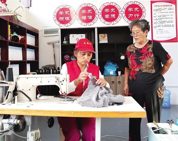 • “家里的舊衣服千萬別扔,我給大家修修還能穿。雖然現(xiàn)在咱們的日子越來越好,但也應(yīng)該注意節(jié)省……”8月3日,在中心城區(qū)文明路道德書屋,志愿者趙秋霞一邊忙著為市民縫補(bǔ)衣物,一邊和市民聊天。