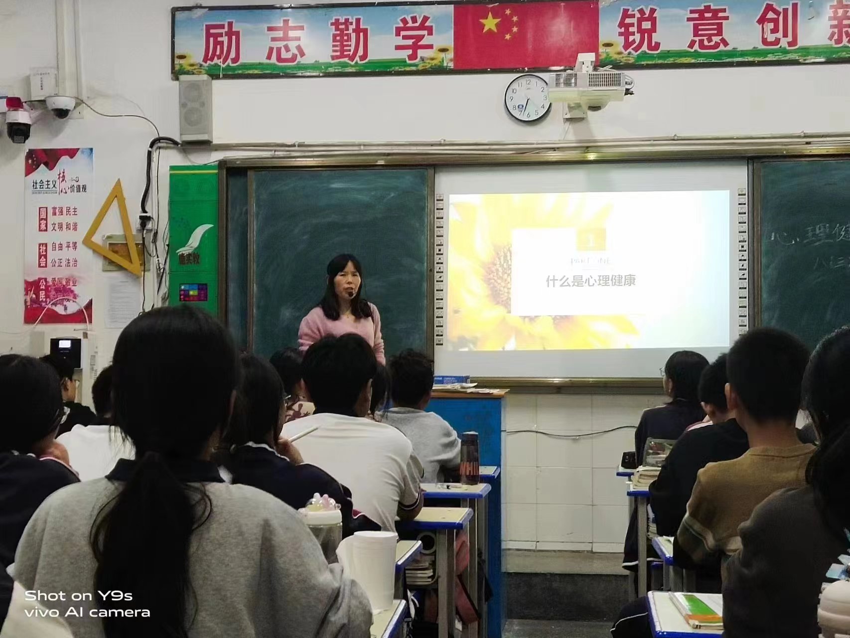 學校政教處提前制作好課件,各班班主任充分利用第一節(jié)晚自習,從“什么是心理健康”“中小學生心理健康的標準”“增進心理健康的途徑”三個方面進行認真講解,引導學生合理調(diào)節(jié)自己的心理,啟示學生日常生活中不僅需要有健康的體魄,而且更需要有健康的心靈,并正確認識自我、接納自我,享受美好人生。特別在講到“增進心理健康途徑”這一環(huán)節(jié)時,學生積極發(fā)言,師生頻繁互動,最終讓學生們明白對于同一件事情,個人想法不同帶來的情緒也不相同,要保持樂觀的生活態(tài)度,即使遭遇到挫折、失敗,依然能夠保持積極向上的情緒。