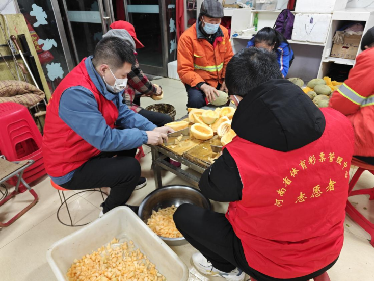 第二日早晨5點(diǎn),周口體彩4名志愿者來到“東方愛心粥屋”開展志愿服務(wù),洗菜、切菜、炒菜、熬粥……大家有條不紊地準(zhǔn)備著早飯?!拔覀儝叩仄鸬煤茉纾瑏淼竭@吃碗熱粥,更有干勁了?!薄爸驹刚哒尜N心,熱粥熱菜的,感覺很幸福。”正在吃早飯的環(huán)衛(wèi)工人你一言我一語、贊聲一片。