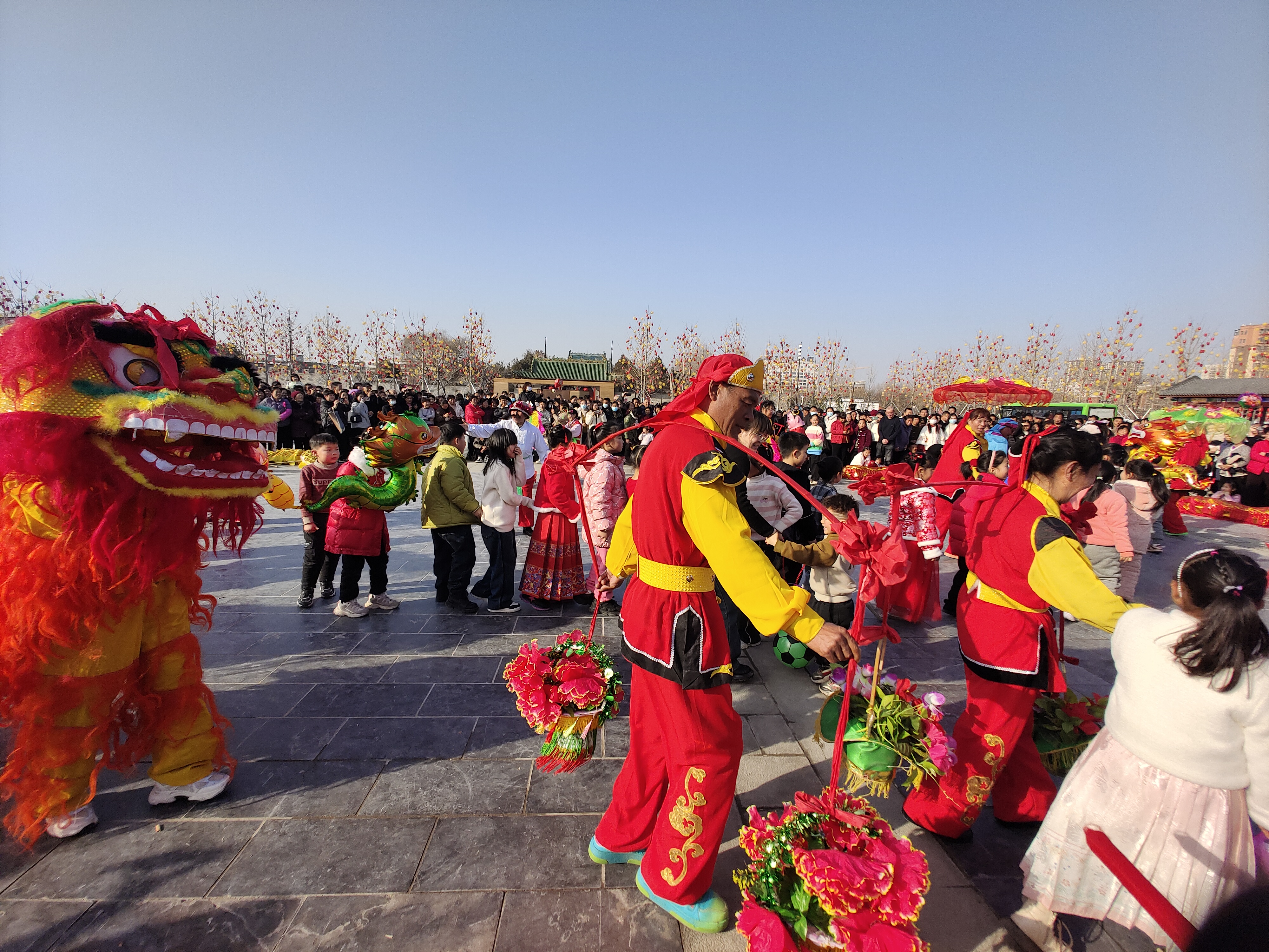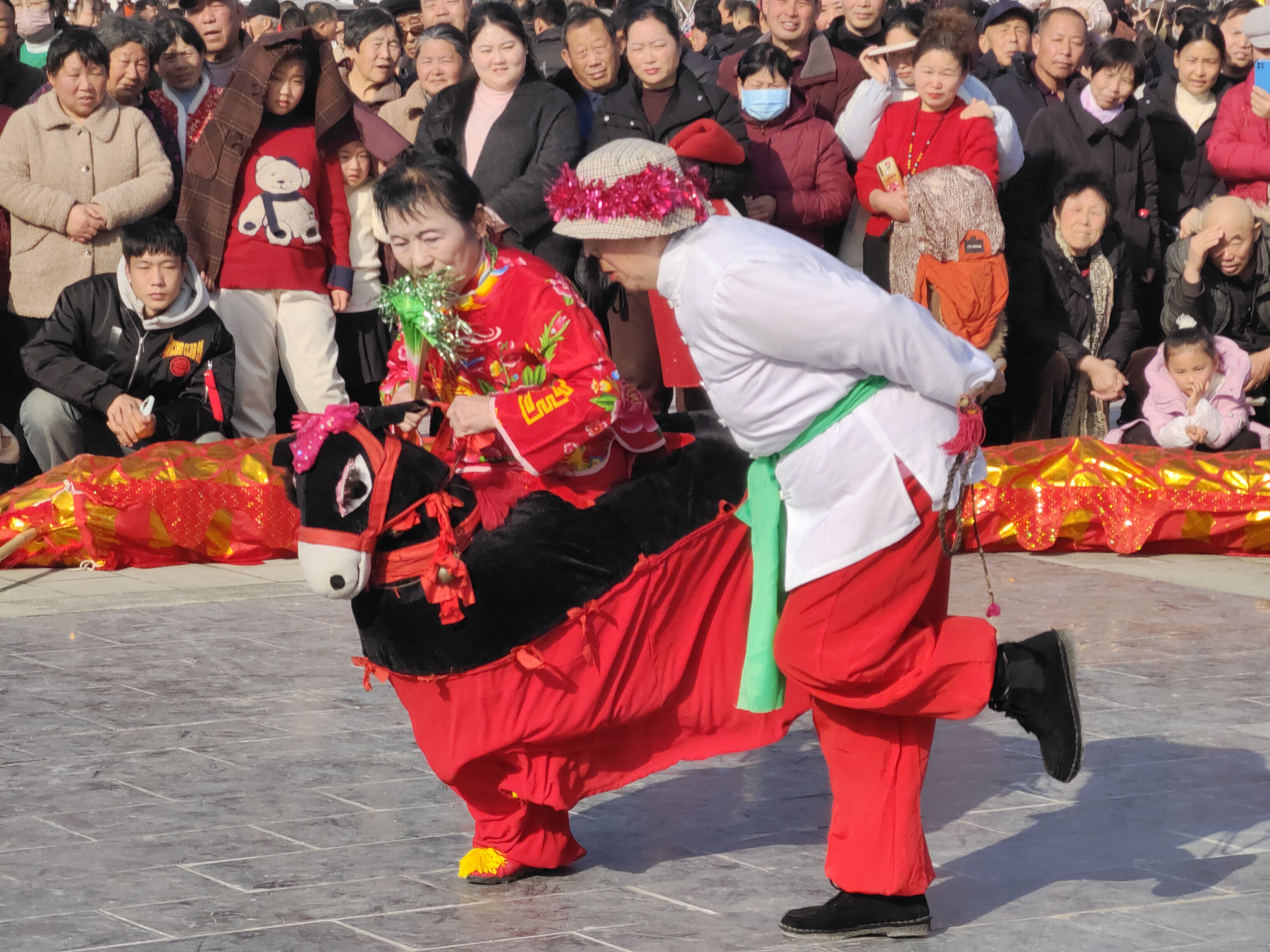 2月12日,在周口關帝老街周口市舉辦的“三川十館·春會”上,來自周口各地民間藝人表演了舞獅、舞龍、騎毛驢等傳統(tǒng)藝術,給周口市民帶來了歡樂。(李建華 攝)