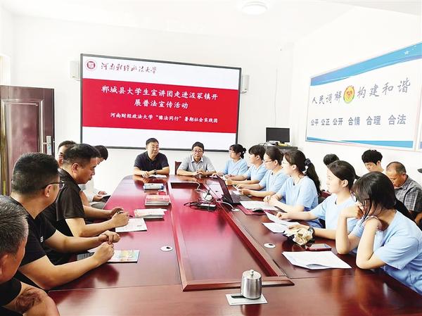 本報(bào)訊 (記者 徐松 通訊員 邢佰強(qiáng) 翟玥 趙坤哲 文/圖) 為推動(dòng)法治鄉(xiāng)村建設(shè),7月11日,鄲城縣委宣傳部和縣司法局組織法律專業(yè)大學(xué)生成立宣講團(tuán),到汲冢鎮(zhèn)開(kāi)展普法宣傳活動(dòng)。大學(xué)生志愿者走進(jìn)田間地頭,把“法言法語(yǔ)”化為“鄉(xiāng)音鄉(xiāng)語(yǔ)”,為法治鄲城建設(shè)注入了青春活力。