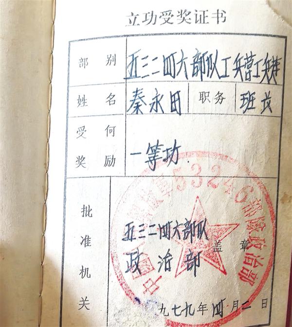 談及應(yīng)征入伍的往事,這里還有一個(gè)小插曲?!?974年年底,在縣武裝部組織的一次學(xué)習(xí)培訓(xùn)期間,我在院子里撿到一張參軍報(bào)名表,便毫不猶豫地填寫好交了上去。”秦永田告訴記者,后來(lái),在村干部的幫助下,他順利通過入伍前的體檢和政審,如愿成為一名新兵,年僅19歲。