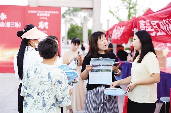 8月14日、15日,鹿邑縣人社局等單位在弘道苑廣場聯(lián)合舉辦“職引未來 筑夢青春”專場招聘會。此次招聘會邀請28家企業(yè)參加,提供涵蓋食品加工、智能制造、電子商務(wù)、餐飲服務(wù)等領(lǐng)域優(yōu)質(zhì)就業(yè)崗位50余個(gè)。圖為招聘會現(xiàn)場。    記者 侯國防 通訊員 陳朝威 攝