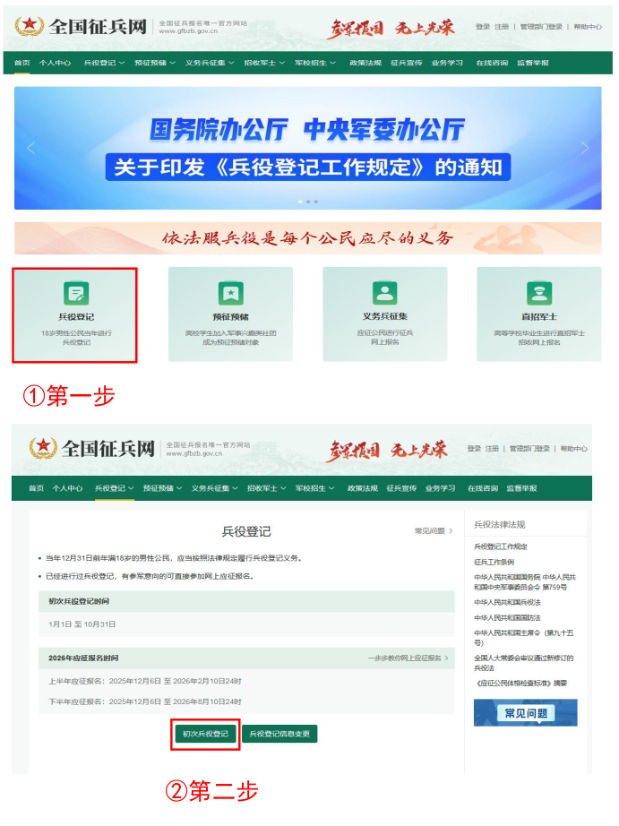 全國(guó)征兵網(wǎng)登記。登錄“全國(guó)征兵網(wǎng)”(網(wǎng)址:http://www.gfbzb.gov.cn)點(diǎn)擊進(jìn)入“兵役登記”。