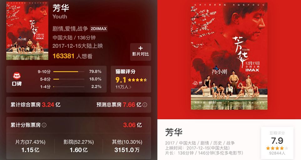 國慶檔因為片子太多,除了《羞羞的鐵拳》遙遙領(lǐng)先外,口碑不錯的《英倫對決》、《追龍》、《縫紉機樂隊》的票房都遭到了擠壓。熱度很高的《空天獵》也一樣。最終,這五部電影的票房分別是20.07億、5.38億、5.75億、4.57億、3.18億?!?a href="http://m.fxqnmb.com/content/2017-12/18/content_604326.htm" target="_blank" >[詳細]