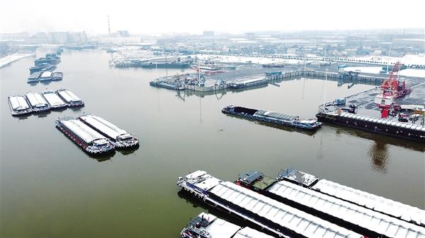 雪落沙潁河,潮涌新征程。1月1日,新年第一天,周口中心港范營(yíng)作業(yè)區(qū)碼頭上,工人有條不紊地裝卸著各類(lèi)貨物。河面上,待泊的貨船排起長(zhǎng)隊(duì),船民們細(xì)心清理船上的積雪。另有滿載貨物的貨船鳴笛啟航,駛向遠(yuǎn)方。