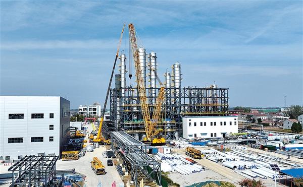 10月24日,在河南金丹乳酸科技股份有限公司年產(chǎn)15萬噸聚乳酸項目建設現(xiàn)場,一臺800噸級塔吊正在繁忙作業(yè)。