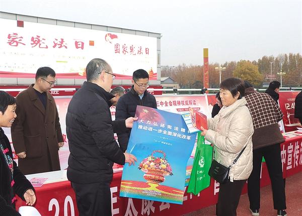 近日,太康多個(gè)單位在縣人民廣場(chǎng)舉行“12·4”國家憲法日集中宣傳活動(dòng),向廣大群眾普及憲法知識(shí),引導(dǎo)廣大群眾牢固樹立憲法意識(shí)、維護(hù)憲法權(quán)威。縣長張峰,縣領(lǐng)導(dǎo)邱范卉、劉鳳芹、王洪彬、史耀閣等到場(chǎng)參觀指導(dǎo)。