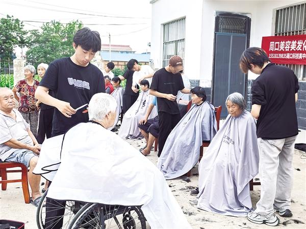 “我還是頭一次享受理發(fā)師上門服務,太高興了?!?月30日下午,沈丘縣卞路口鄉(xiāng)張保元村村民馬桂榮撫摸著剛剪過的頭發(fā),臉上樂開了花。當日,張保元村駐村第一書記劉會見組織周口科技職業(yè)高中的劉宇、李杰等7名志愿者來到張保元村開展義剪活動。