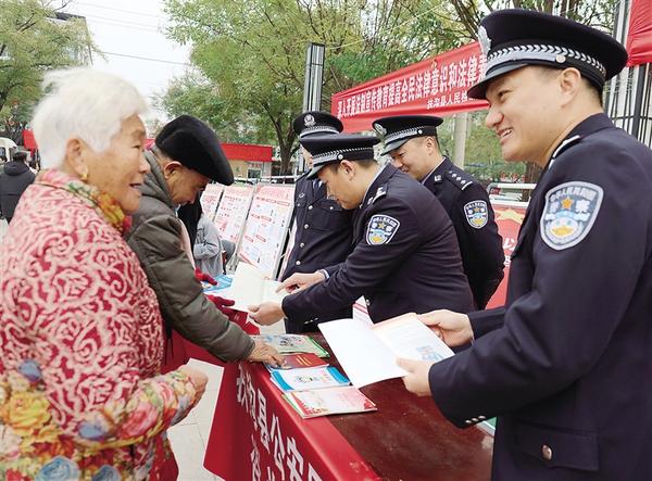 民警向群眾發(fā)放宣傳資料。2024年12月1日~12月7日是第七個(gè)“憲法宣傳周”。為大力弘揚(yáng)憲法精神,營(yíng)造崇尚憲法、學(xué)習(xí)憲法、宣傳憲法、遵守憲法、維護(hù)憲法的濃厚氛圍,連日來(lái),扶溝縣公安局積極組織民警到大程文化廣場(chǎng)開展集中宣傳活動(dòng)。