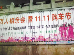 11月12日,由市委組織部、共青團(tuán)周口市委、市婦聯(lián)、周口報業(yè)傳媒集團(tuán)主辦的周口首屆大型相親會暨雙11購車節(jié)圓滿落幕?!?a href="http://m.fxqnmb.com/content/2017-11/15/content_591402.htm" target="_blank" >[詳細(xì)]