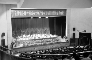 會(huì)議要求,對(duì)煙花爆竹領(lǐng)域安全生產(chǎn)要堅(jiān)持集中排查和長(zhǎng)期堅(jiān)守相結(jié)合,這次集中排查要徹底澄清全縣煙花爆竹生產(chǎn)企業(yè)的底子,做到心中有數(shù)。把隱患消除在萌芽狀態(tài),堅(jiān)決保證不再發(fā)生煙花爆竹安全生產(chǎn)事故。要把教育大多數(shù)與打擊個(gè)別非法生產(chǎn)相結(jié)合。對(duì)多數(shù)守法企業(yè)業(yè)主廣泛開(kāi)展安全生產(chǎn)宣傳教育,同時(shí),對(duì)心存僥幸心理的非法生產(chǎn)者,要從嚴(yán)、從快給予打擊,保障人民群眾生命財(cái)產(chǎn)安全,保證社會(huì)大局穩(wěn)定,著力打造平安淮陽(yáng)、和諧淮陽(yáng)。