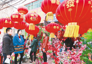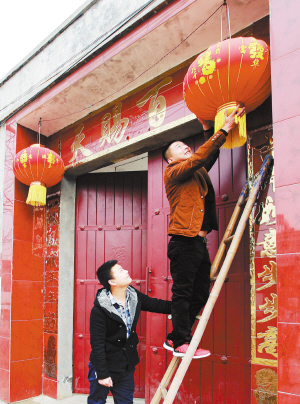 ①貼對(duì)聯(lián),掛燈籠,喜迎新春。 (記者 王映 攝)
