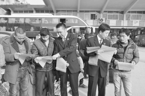 近日,太康縣法院法官在車站為外出務(wù)工人員發(fā)放并講解法律宣傳資料。連日來,正值外出務(wù)工人員集中返程高峰,縣法院的法官們前往車站為外出務(wù)工人員提供法律維權(quán)服務(wù),并向他們發(fā)放《外出務(wù)工人員維權(quán)手冊(cè)》、《法律小常識(shí)》等法律宣傳資料,提供法律咨詢,促使他們外出務(wù)工自覺依法維權(quán)。(李康 攝)
