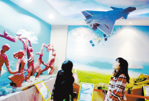 “中國夢(mèng)”文化館在京開館 3月8日,人們?cè)凇爸袊鴫?mèng)”文化館內(nèi)參觀殲-20戰(zhàn)斗機(jī)模型。當(dāng)日,由中國教育策劃學(xué)術(shù)研究會(huì)設(shè)立的“中國夢(mèng)”文化館在北京通州區(qū)于家務(wù)中學(xué)開館。新華社記者 金良快 攝