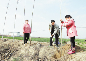 左圖 昨日,扶溝縣大李莊鄉(xiāng)高河沿村的群眾正在植樹。植樹節(jié)來臨之際,該縣各鄉(xiāng)鎮(zhèn)切實抓好以查漏補缺為主的植樹造林和美麗鄉(xiāng)村綠化工作,扎實有序推進生態(tài)縣建設(shè)。(黃金峰 周運動 攝)