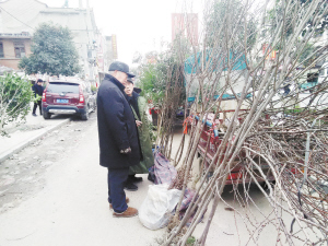 上圖 昨日上午,一位市民正在挑選果樹。又是一年春來到,眾多市民紛紛趁早春時節(jié)種植樹木。