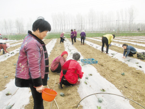 周營鄉(xiāng)積極調(diào)整種植結(jié)構(gòu),因地制宜發(fā)展高效農(nóng)業(yè)種植,引導群眾搞小弓棚西瓜種植,畝均收入6000余元。4月2日,該鄉(xiāng)王寨村農(nóng)民正移栽西瓜苗。