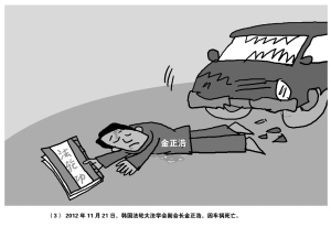 ?、?nbsp;2012年11月21日,韓國法輪大法學(xué)會(huì)副會(huì)長金正浩因車禍死亡。