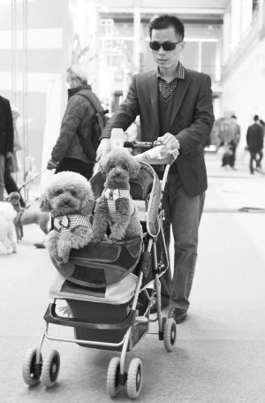 2015中國(北京)寵物文化節(jié)開幕      4月11日,兩只泰迪犬坐在兒童車?yán)?。?dāng)日,為期三天的2015中國(北京)寵物文化節(jié)在北京蟹島國際會展中心開幕。本屆寵物文化節(jié)包括“王牌寵物課堂”“第7屆WCF國際純種貓展”“中國純種犬——北京冠軍展”等多個主題活動。 新華社發(fā)