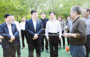在沙潁河八一路橋,徐光被沙潁河兩岸正在開展的環(huán)境集中整治的火熱場景所吸引。近5000名機關(guān)干部職工頂著烈日,正在各自分包的路段緊張勞動。有的腰間系上繩子,來到陡峭的河堤下清理垃圾;有的在堤上清運垃圾;有的從河里提來水,認真地清洗線桿上的小廣告。徐光沿河而行,與正在參加義務(wù)勞動的機關(guān)干部親切交談?!澳銈兪悄膫€單位、負責的堤段有多少、清理的范圍是什么、大家對開展環(huán)境集中整治是否滿意?!毙旃鈫柕谜J真仔細?!皾M意,而且要全力參與。今天我們都是主動報名參加,環(huán)境好了我們大家都是受益者?!甭牭酱蠹业幕卮穑旃馐指吲d。他說,沙潁河是周口的母親河,一河穿城的美景是周口的獨特優(yōu)勢和城市名片。開展環(huán)境衛(wèi)生集中整治,是市委、市政府為民辦好事、辦實事的具體體現(xiàn),是展示周口良好形象的迫切需求。各相關(guān)單位要切實提高思想認識,迅速行動,按照整治要求,細化工作任務(wù)、落實工作責任、明確工作目標,做到有序推進,使之成為展示城市魅力的景觀帶、市民休閑健身的綠色長廊。要統(tǒng)一規(guī)劃、注重開發(fā)、加快建設(shè)、強化管理,進一步加大沙潁河城區(qū)段綜合整治力度,使之能夠更好地服務(wù)市民生活。