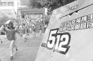 校園地震逃生演練 5月12日,安徽省合肥市蜀山區(qū)第五十中學(xué)(新區(qū))的學(xué)生們?cè)谘菥毜卣鹛由冯x。當(dāng)日是“5·12”汶川地震紀(jì)念日,該校開展逃生演練。活動(dòng)旨在指導(dǎo)學(xué)生遇到地震時(shí)采用有序、正確的處置方法。