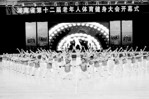 省十二屆“老健會”開幕式現(xiàn)場節(jié)目表演。(記者 沈湛 攝)