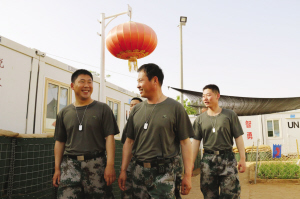中國維和部隊首次配備單兵“身份識別牌”    5月26日,在馬里加奧維和任務(wù)區(qū),佩戴著“身份識別牌”的中國維和部隊成員值勤歸來。與以往不同的是,新一批維和官兵胸前,都佩戴著一個用中、英、法三種文字標記姓名、血型、籍貫和編號信息的“身份識別牌”。這是中國維和部隊根據(jù)執(zhí)行維和任務(wù)需求,首次為官兵配備單兵“身份識別牌”。 新華社發(fā)