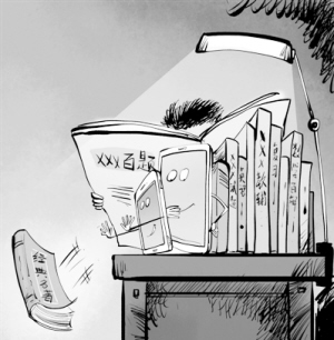 記者調(diào)查發(fā)現(xiàn),在繁重的課業(yè)負(fù)擔(dān)下,不少初高中學(xué)生所讀書(shū)籍越來(lái)越單一,教輔書(shū)占了絕大比例。智能手機(jī)的普及,各類(lèi)社交平臺(tái)的出現(xiàn),更是讓學(xué)生沉溺于淺閱讀。相反,拿起名著、對(duì)話(huà)經(jīng)典等深層次閱讀的情況,卻不容樂(lè)觀。這正是: