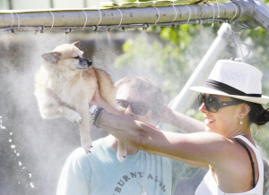 熱浪襲擊溫哥華 6月27日, 在加拿大溫哥華, 一名女子利用街頭的噴水設施為寵物狗降溫。據加拿大環(huán)境部門檢測,不列顛哥倫比亞省沿岸地區(qū)當日最高氣溫達攝氏三十度,內陸地區(qū)升至四十度。溫哥華市政府已發(fā)出高溫預警,呼吁民眾外出時注意身體狀況,謹防中暑。新華社發(fā)