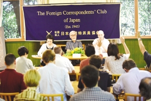 宮崎駿敦促安倍承認(rèn)日本曾對華發(fā)動侵略戰(zhàn)爭   7月13日,在日本東京外國記者俱樂部,奧斯卡終身成就獎得主、日本著名動畫大師宮崎駿(中)出席記者會并發(fā)表講話。當(dāng)日,宮崎駿在記者會上敦促日本首相安倍晉三在其戰(zhàn)后70周年談話中承認(rèn)日本曾對中國發(fā)動侵略戰(zhàn)爭,并對由此給中國人民造成的巨大苦難進(jìn)行痛徹反省。 新華社發(fā)