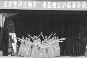 近日,扶溝縣“百姓宣講直通車”進(jìn)基層宣講巡演活動巡回各鄉(xiāng)鎮(zhèn)行政村進(jìn)行宣講,受到群眾的熱烈歡迎和稱贊。圖為“百姓宣講直通車”在該縣韭園鎮(zhèn)演出。(黃金峰   潘曉康  攝)