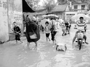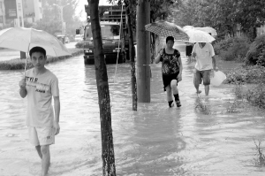 淮陽城區(qū)部分路段積水成災(zāi) 晚報記者 杜欣 攝