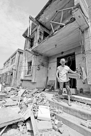 7月21日,一位老人從上海松江田村二村一處受損房屋前走過(guò)。