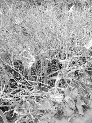 記者采訪中發(fā)現(xiàn),這里的綠化帶植物成片成片地枯死,從干枯的程度上看,應該枯死一段時間了,而這些植物的枝條上都裹著一層白色物體。