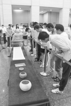 當(dāng)日上午,聽(tīng)說(shuō)有3位市民要捐贈(zèng)藏品,很多市民到市博物館一飽眼福。在市博物館大廳,很多市民圍著商瑩冰、馬偉、崔猛3位市民捐贈(zèng)的藏品仔細(xì)觀看。